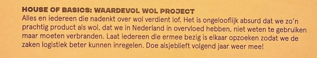 23 oktober 2024: finaledag van de Duurzame Dertig. Een spannende dag voor mij. Van de 100 inzendingen, zijn er 30 genomineerd door een vakjury en mijn project: waardevol wol van vacht naar vest is één van deze dertig. Hoe bijzonder.
